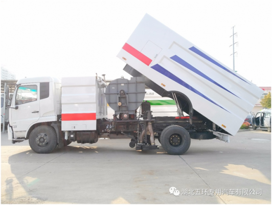 長安國五掃路車 整車配置 該掃路車采用長安國五二類底盤改裝,加裝副發(fā)動(dòng)機(jī)、風(fēng)機(jī)、清水箱、垃圾箱、左右立掃、后置吸盤,掃盤降塵系統(tǒng),液壓系統(tǒng)、專用裝置電控系統(tǒng)和副車架
