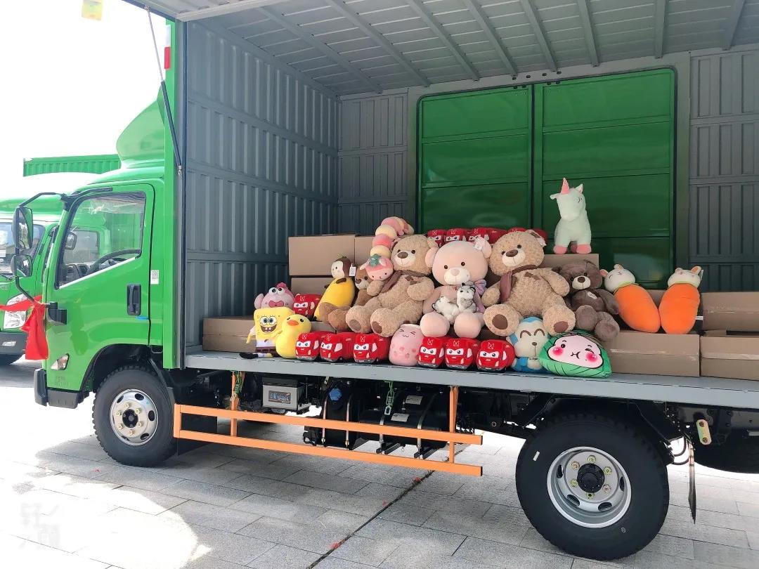2020年7月24日,寧波商派城配管理有限公司購置100輛江鈴凱運(yùn)藍(lán)鯨展翼車型正式交車,首次交車50輛 。