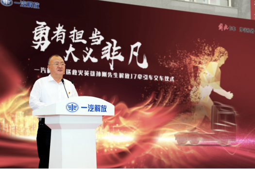 7月31日,以“勇者擔當·大義非凡”為主題的一汽解放贈送孫剛先生解放J7牽引車儀式在吉林長春隆重舉行,中國一汽總經(jīng)理助理、一汽解放董事長、黨委書記胡漢杰,一汽解放總經(jīng)理、黨委副書記朱啟昕,一汽解放黨委副書記、工會主席張國華,一汽解放總經(jīng)理助理、銷售公司總經(jīng)理、黨委書記王志才,一汽解放銷售公司副總經(jīng)理張松,一汽解放黨群工作部部長任瑞杰等領導,以及救火英雄孫剛先生、新聞媒體記者朋友們參加了此次活動,共同見證了這一榮耀的時刻。