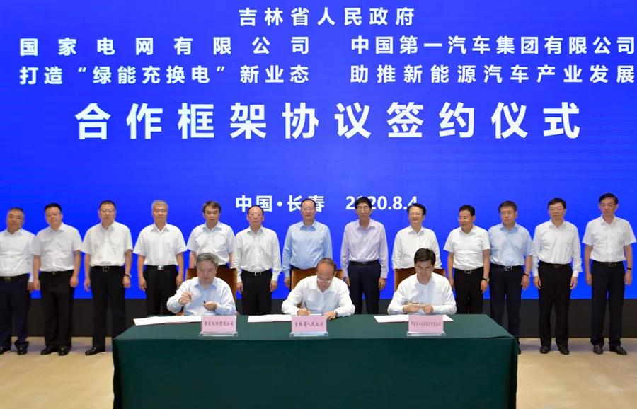 8月4日,中國一汽與吉林省政府、國家電網(wǎng)簽署打造“綠能充換電”新業(yè)態(tài)助推新能源汽車產(chǎn)業(yè)發(fā)展合作框架協(xié)議。