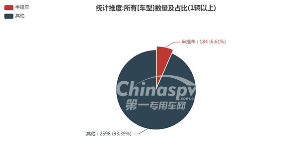 第335批新車產品公示中的2782輛產品中,半掛車(184輛,占比6.61%)。