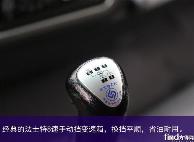 與這款發(fā)動機相匹配的是經(jīng)典的法士特8速手動擋變速箱,換擋平順,省油耐用,能帶來更好的駕乘舒適性。