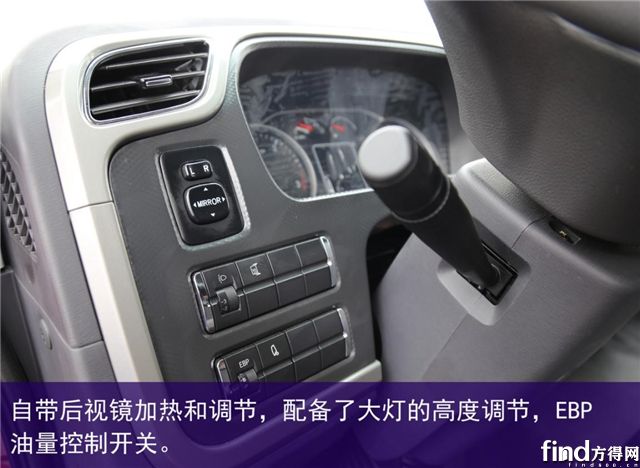 配置方面,ES7自帶后視鏡加熱和調(diào)節(jié),避免雨雪天氣影響駕駛員視線,提高行車安全性,駕駛室配備了大燈的高度調(diào)節(jié),司機可以根據(jù)自己的駕駛習(xí)慣進行調(diào)整,非常方便。EBP油量控制開關(guān)也在這個區(qū)域,重載、空載時切換方便,一鍵操作,提高車輛的經(jīng)濟性。
