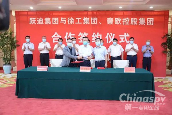 2020年8月26日,躍迪集團(tuán)與徐工集團(tuán)、秦歐控股集團(tuán)的合作簽約儀式順利舉行,河北省委常委、石家莊市委書記邢國輝,河北省工信廳廳長、黨組書記龔曉峰,石家莊市委副書記、市長鄧沛然,徐工汽車制造有限公司副總經(jīng)理鄭建新,躍迪集團(tuán)董事長呂洪濤等領(lǐng)導(dǎo)出席了本次簽約儀式。
