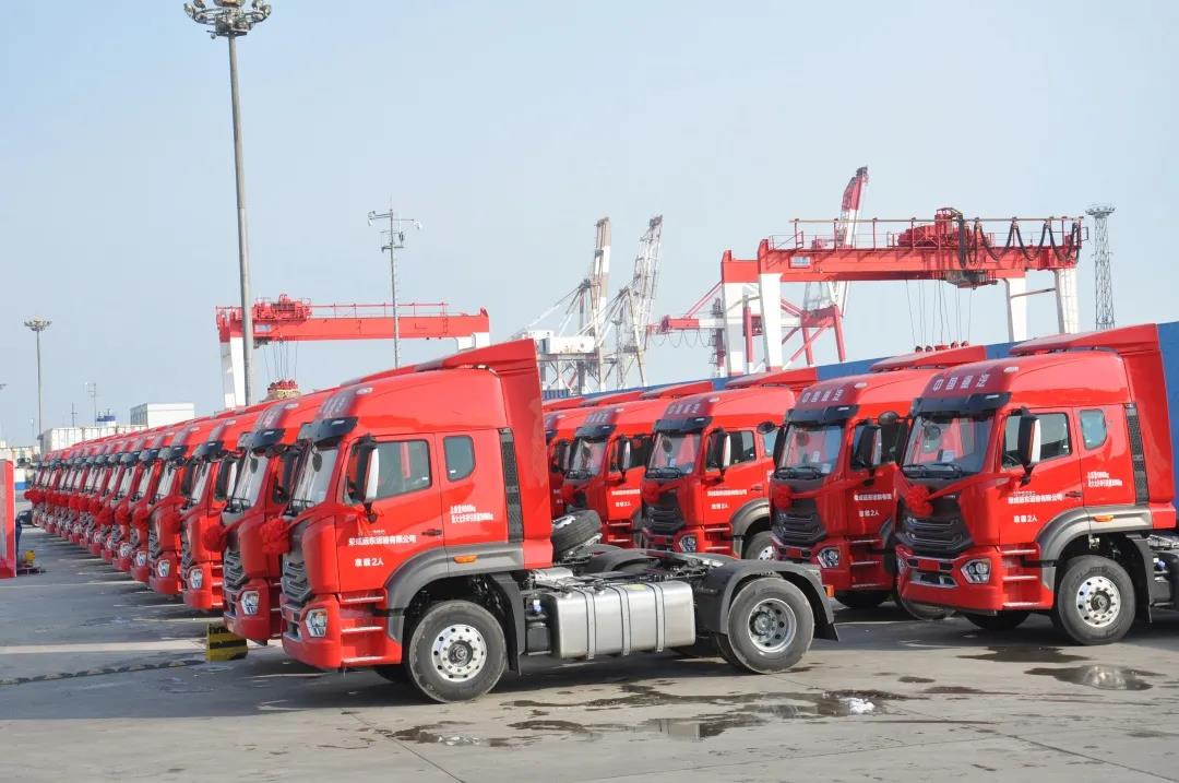 2020年12月15日,威海迎來(lái)了今年的第一場(chǎng)雪,威海大客戶也迎來(lái)了新的伙伴——40輛豪沃N7港口牽引車(chē),紅色的牽引車(chē)在港口營(yíng)造出一副壯麗美景!