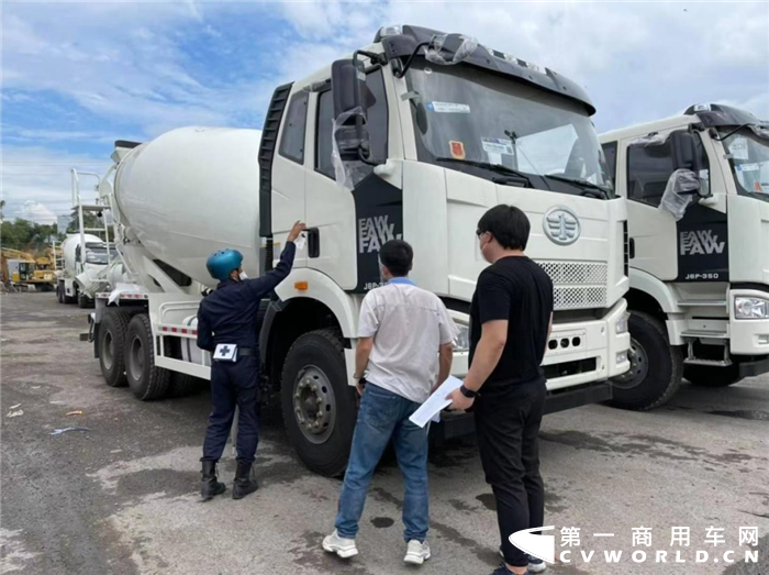 解放卡車(chē)到達(dá)港口時(shí),一汽進(jìn)出口公司駐外代表會(huì)同代理商進(jìn)入港口進(jìn)行接車(chē)檢查,確保產(chǎn)品良好狀態(tài)。港口工作人員說(shuō):“從來(lái)沒(méi)見(jiàn)過(guò)親自進(jìn)港檢查車(chē)輛的廠(chǎng)家人員,看到你們這么關(guān)注產(chǎn)品質(zhì)量,我們對(duì)FAW產(chǎn)品充滿(mǎn)了信心”。