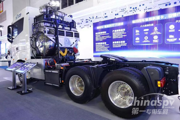 2021年9月25日,這輛福田汽車智藍(lán)歐曼液氫重卡亮相當(dāng)天開幕的2021年世界智能網(wǎng)聯(lián)汽車大會(huì)。2018年北京市科委立項(xiàng)組織科技攻關(guān),該車型具有高效率、高集成、長續(xù)航、輕量化等突出優(yōu)勢,搭載了大容量液氫系統(tǒng),是國內(nèi)首款實(shí)際工況續(xù)航1000+公里、標(biāo)載49噸氫能重卡,可滿足重卡長續(xù)航行駛需要,有效拓展了氫能重卡的應(yīng)用場景。在國家推進(jìn)“雙碳”目標(biāo)背景下,為新能源商用車的推廣提供了“福田方案”。