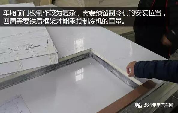 在這些所有板材中,車頂和底部以及左右兩側(cè)的稍微簡單,車前以及后門較為復(fù)雜。車前是因為需要預(yù)留位置來裝制冷機,因此車前板需要預(yù)埋符合冷機大小的鐵質(zhì)框架。