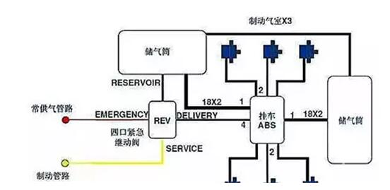 主要有三大件:緊急繼動(dòng)閥,掛車(chē)ABS和制動(dòng)氣室。