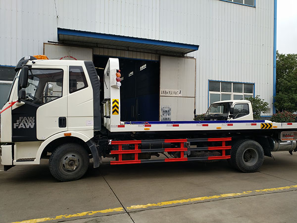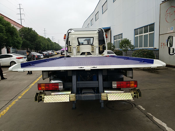 上裝配置:平板長6.2米,寬2.48米,平板承重6噸,后拖舉承重3.5噸(選擇5噸),雙側聯動操作閥,4噸液壓絞盤,鋼絲繩長度21米,L 型抱胎叉1對,警燈喊話器1套,綁帶4根,輔助輪2套,洗手壺1件。