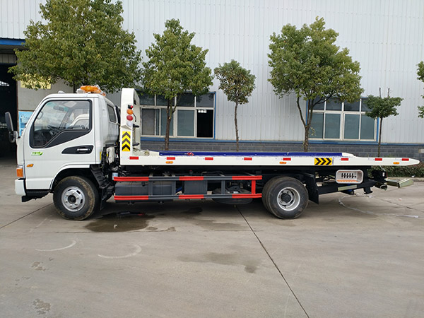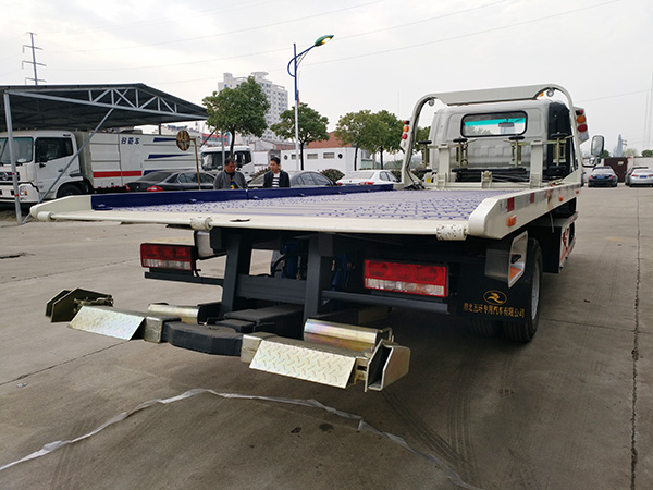 1.平板長5.6米,寬2.3米,平板承重4噸,后拖臂拖舉能力3噸;